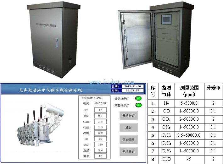 1. 監(jiān)測氣體: CH4、C2H2、C2H4、C2H6、H2、CO、CO2及H2O;