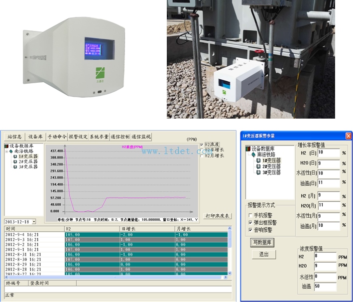 1. 監(jiān)測氣體: 以H2含量為主的H2、CO、C2H2、C2H4混合氣體的濃度及微水含量;
